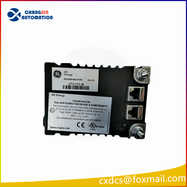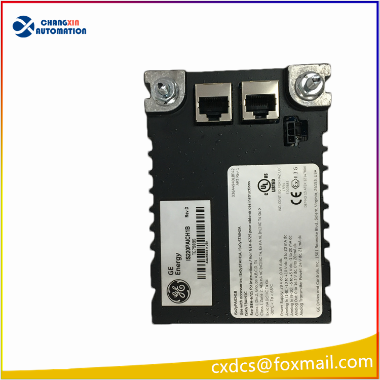 The IS220PAICH1B is an Analog Input/Output (I/O) Module developed by GE as part of the Mark VIe control system series. It is the second-generation PAIC unit and features modified operating parameters, particularly regarding minimum voltage requirements, compared to its predecessor PAICH1A.