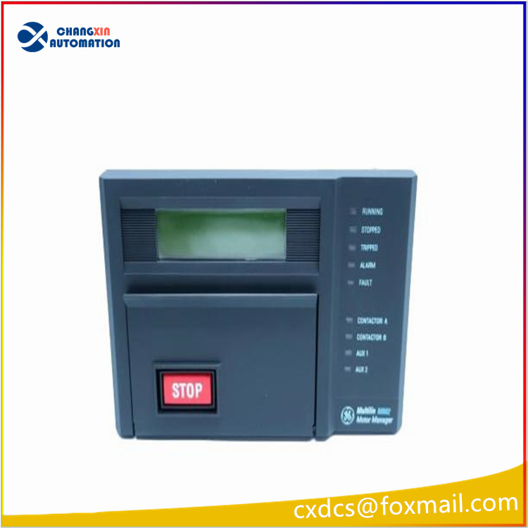 General Electric Multilin’s MMII-PD-1-2-MOD600-120 has an LCD display that allows local interfacing and access to information. The RS485 Modbus interface also allows remote connections at a transfer rate of 1200-19,200 baud. The front panel also includes nine LED indicators (running, stopped, tripped, alarm, fault, contactor a and b, aux 1 and 2), as well as input keys.